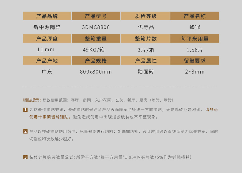 新中源陶瓷 臻冠 拋釉磚(3DMC8900)800*800